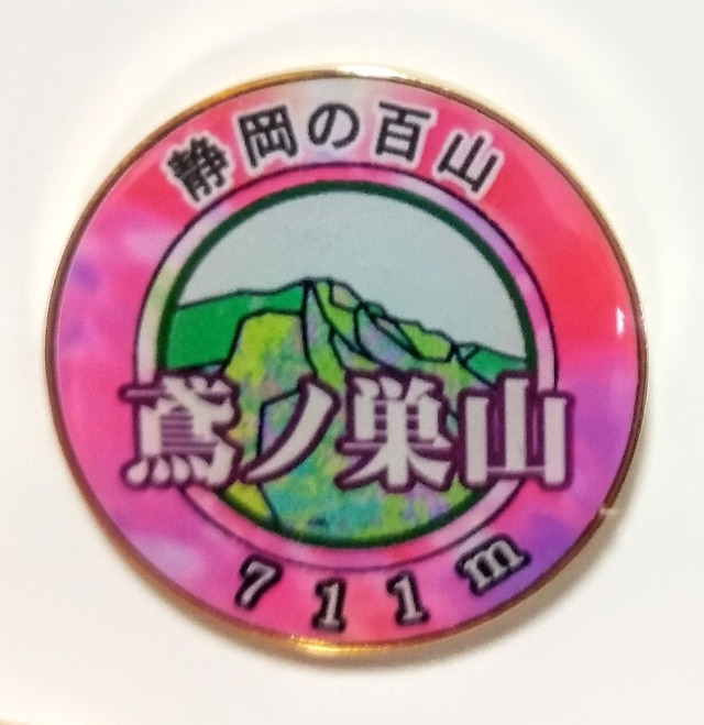 静岡の百山 鳶ノ巣山 711m バッジ 静岡県浜松市 バッジは、高精細印刷加工後に、エポキシ樹脂コーティングした特製品です。